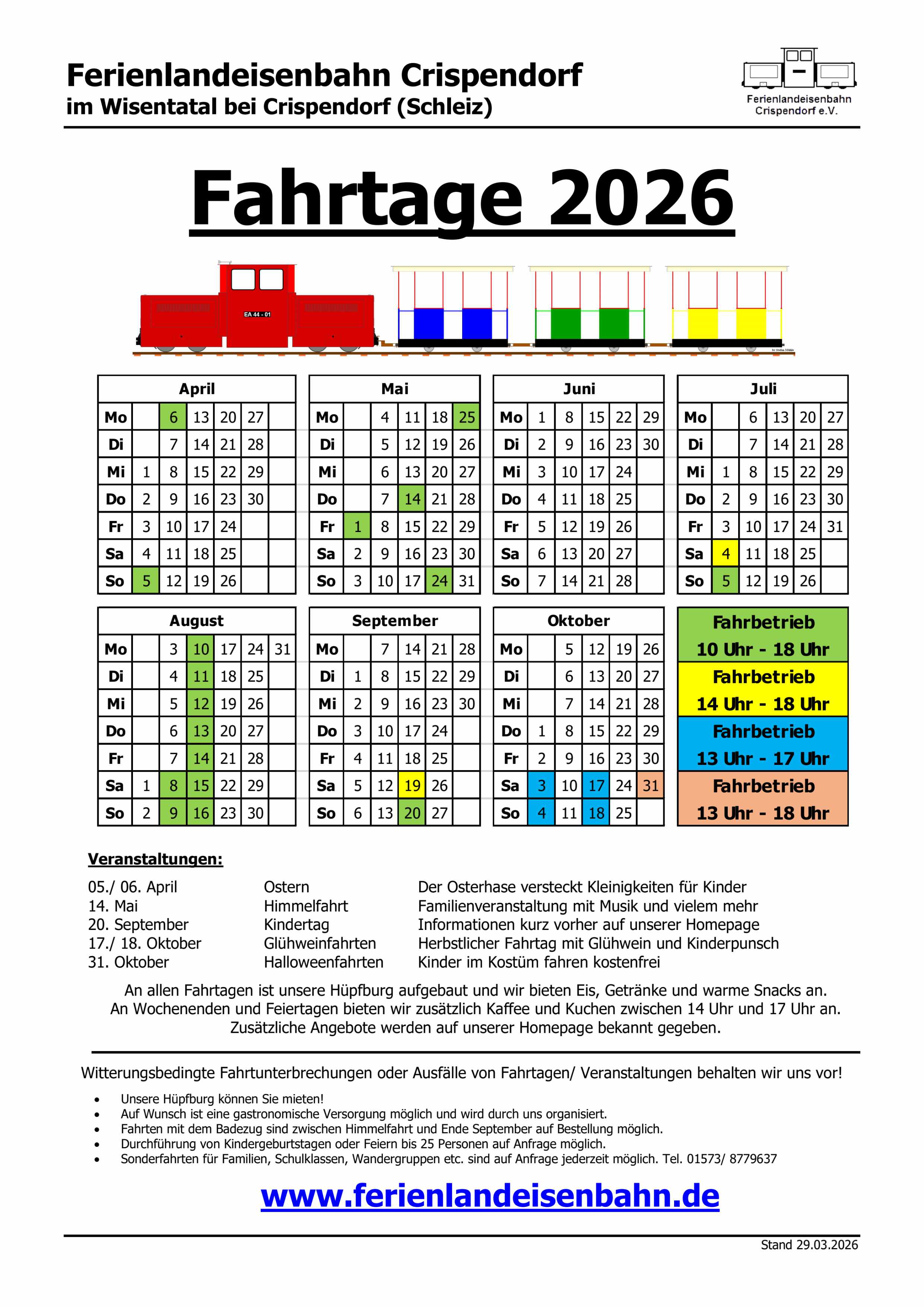 Witterungsbedingte Fahrtunterbrechungen oder Ausfälle von Fahrtagen / Veranstaltungen behalten wir uns vor!