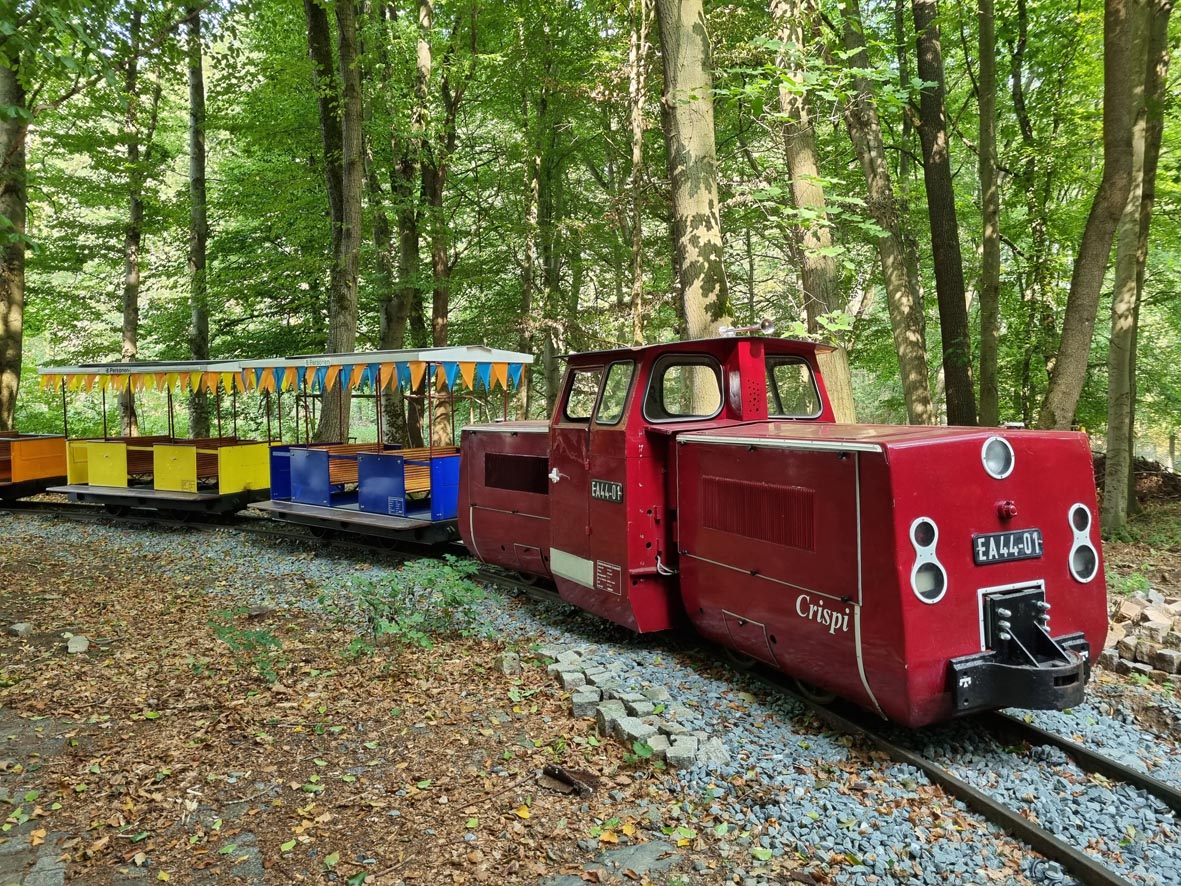 Herbstlich bunt auf und neben den Gleisen der Ferienlandeisenbahn Crispendorf. Am Tag der deutschen Einheit sowie am kommenden Sonntag drehen die